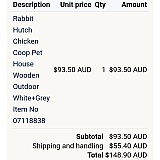 Purchased a rabbit hutch described as outdoor small animal coup/rabbit hutch and what a total waste of money it was. So flimsy, very poor materials- literally wouldn't withstand any outdoor conditions and even has an uneven bottom and gaps on one side when put together so snakes could easily get in. Floor trays are so fragile they don't slide in and out properly and honestly, the whole thing is so fragile you couldn't put a small animal in it. Paid just under $150 with shipping and the only place it is being shipped from this point on is the dump! Buyers beware of the junk being sold on this site.