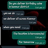 It is very pathetic to see this kind of service. I ordered butterscotch cake for delivery on 28th july to be delivered on thrissur state, kerala. Order placed on 3 days before. They are outsourced to a service in local site to deliver it and they are asking additional money 300 rs extra at last moment. First of all I paid additional money and the product delivered is something else.