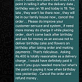 After placing order excitedly birthday date they not delivered and I asked what happened.