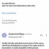 The actual image has blueberries on top of the cake and plz find attached image what i received and the way the customer support reply to our emails.