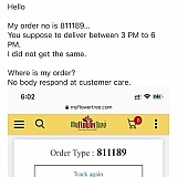 I ordered flowers which were to be delivered between 8am -12 PM. I paid online. The flowers have not come (till 430 PM). There is no way to reach them. The phone number does not work- *******1000 does not work. They dont give you a call back. The chatbot never replies. Have tried all these options. Please do not spoil your occasion by ordering from here