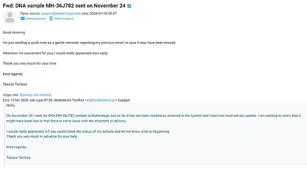 Since that message, MyHeritage has completely stopped responding. I have sent multiple emails and submitted repeated requests through their official support form, with no reply at all.