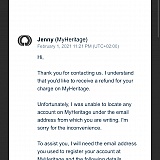 Answer: Hi After posting my complaint about MyHeritage on here I got a very quick response from some one called Dave at the company. He told me to send an email to [email protected] and add the subject Dave: sitejabber. He responded a couple of days later - I emailed on a Saturday - and the auto repeat on my subscription was cancelled and my money refunded within days. Hope this helps.