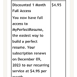 I fell for it, I paid $2.95 for a two week trial, but the next day I try to download a resume but I was redirected to a page to pay again, this time asking to pay 23$ for a two week trial. I reached out to customer support so many times and they are all very shady, I was told my bank denied the trial transaction and I needed me to create a new one. BUT it not true, my bank didn't dey the transaction, payment went through and then myPerfectResume submitted a refund the NEXT day, thats not a "failed" transaction, its not how it works!