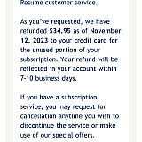 Had a charge for subscription, however being on a limited income I need to cancel my subscription. The doen side it will take 7 to 10 days from my refund. Not able to buy my turkey meal. The service customer was very gracious.