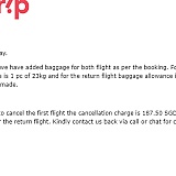 Bought 20 kilos of baggage and they didn't process it on one of the flight, so I asked for cancellation and they ask for cancellation fee when they would've give the additional 20 kilos or refund me. Generated a fake automated response when I replied to them as well.