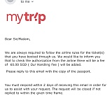 So,I asked for to correct my name, then they sent email to pay S$60.00 to correct name.