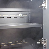 The Pro Series Wall Cabinets from New Age Products are truly built to high standards! All steel welded construction, top quality door hinge and locking hardware and an amazing paint finish. The shelf height adjustability within the particular cabinets I ordered is very adjustable. I ordered a few wall cabinets in black color about a year ago and just ordered a few more of the same color today to complete my project. I am not a contractor, but simply a "do it yourself" home owner working on my basement and enjoy learning the fast array of fastener hardware and high quality products to complete my basement refinishing project. I installed these shelves in my house basement shop using 2 x 4 hardwood backer boards and Tapcon masonry screws. These wall cabinets can hold up to 200 pounds of weight and there are plenty of wall surface mounting options as seen in the photos. These cabinets come with a under cabinet lighting valence. LED lighting kits are also available through New Age Products. To place my online order, I called the toll-free number and spoke with Vishakha a Design & Sales Consultant with New Age Products. Vishakha very clearly explained the difference between the products I was interested in which helped me make my final decision quickly. While on the phone she walked me through the online ordering process and sent order confirmation emails as well. To be able to make a phone call, have someone like Vishakha to quickly pick the line, quickly answer any questions about the vast array of products to even help you with placing your order is a rarity today. Thank you Vishakha and New Age Products!