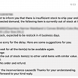 And before your ordering, for the out-of-stock items, we have marked the words like " Expected dispatched in xxx business days" on the product page. You can find it after you choose the size and color.