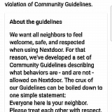 I said something like "what a scumbag vandal" to do that. So NONE of the 3 comments were about other users in Nextdoor but rather about criminals who victimized them. I brought that to the attention of Nextdoor personnel and they just ignore me as if they don't want to admit that they made a mistake. I said "so, if someone mentioned Charles Manson