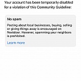 Kicked off again (2nd time in 6 years). I have no idea why. It seems to me that it's a bogus suspension of my account (4 days) and Nextdoor only points to their community guidelines for reference which is a very broad bible of behavior expectations. They claim I "spammed" which is absolute hogwash. I engage in posts like everyone else on the site. I think their mods need mods!