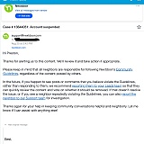 I've included screenshots of a conversation with support that clearly shows they are not prepared to give clear and concise answers/reasons to questions about being suspended. Instead, they give vague answers while hiding behind their guidelines...which is NOT an acceptable way to respond. Further, in the email from support the person states that they previously warned me about the comments I made a day before I questioned the suspension. I did not receive any such notification/warning as the suspension occurred the same day the comments were posted. So either this person is confused or just outright lying.