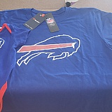 I ordered 2 personalized bills shirts with number and name on the back and a onesie for my lil dude for the playoffs. They showed up 2 weeks late (but not the onesie) so never got to wear them. Also the printing was terrible. Looks like a toddler made them in the darkest room they could find to ensure they didn't notice how terrible it is. Cracked/faded lettering and im pretty sure the outline on the bills logo is red and not pink, this is due to the poor quality of printing. My lil dudes onesie looks better than the customized shirt! Look at the difference. Over 135$ spent for complete garbage. You would think it being an NFL product you would guarantee quality fabrics and logos but NO you get a big ol piece of poopie. Take some of that money from the over-priced tickets you sell for games and apply it to your products your selling. Never again.
