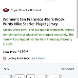 Talked with a rep last week jan 28th and they assured me the jersey would be shipped Friday and they would expedite it since it wouldn't get here in time for the Superbowl. Now it says will arrive the 15th and the last is telling me it was "oversold" so they don't have any to ship to me. Disgusting business practice for a company that can pay one man 50million dollars but not sent one shirt on time