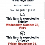 So I placed an order for a jersey that I've been wanting for years they say to me that it's going to be shipped out into my house November 1st 2019 wait a week and then check my spam emails to find out that they never sent it or they cannot fulfill the order in the meantime I turned down multiple opportunities to purchase elsewhere weather that be eBay Craigslist or personal sellerI was literally waiting every second as soon as I place the order to receive the item and thought it was all good especially after they confirmed the delivery expected date it was a huge letdown and really ruin my whole day I will never purchase from them again they did refund me the money but the money wasn't the issue I wanted the product.