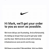 Answer: Nike has always given me a confirmation after ordering and its usually right on time.