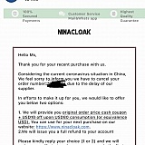 This company Ninacloak should be investigated and website permanently removed from any type of website. They cancelled my order and stole money. I never received any merchandise. There should be a warning to all consumers NOT TO DO BUSINESS WITH NINACLOAK. I did learn something from this scam incident... TO CHECK OUT REVIEWS AND DO MY OWN INVESTIGATIONS BEFORE BUYING ANYTHING.