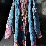 Used PayPal as always, good thing I did. Three items ordered, two received within the past six weeks, one still missing. Knit item looks like the fabricator had a stroke during production, lumpy seams, twisted main body, uneven hem. Jacket depicted as denim-like in advertisement image, cheap rough polyester with poorly printed screen work that is very pale not a typical denim color like they skimped on dye bath too. Not embroidery as stated/depicted and enlarged for detail but poorly copied and printed onto semi-plastic like fabric. Vendor tried to get me to wait past the time to open up a complaint with PayPal but I managed to get refund on one item that still has not arrived. I have ordered other stuff directly from China but this vendor was a nightmare. DHGate a better way to go. Photo on left is of jacket from catalog advertisement, Picture of fragment on right-side is from item that arrived from China. Note fragment is flat without embroidery and lacking detail, lush colors and trimmings. Poorly done printing lacking detail of advertisement.