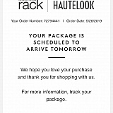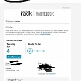 This is my first and last order with this place. Unbelievable! Before ordering, I checked shipping times to make sure it wouldn't take a week or more since I would be traveling. The website says items will ship in 1-3 days. Not that they MAY ship or will probably ship... I placed my order last Tues evening and heard nothing until Fri. Finally I tweeted Rack & a CSR messaged me & said they would check on my order. They got back saying that since Friday was the 3rd day (4th actually but who's counting, right?!) that I would hear something soon. I get an email Fri evening saying that MOST of my order is ready to ship & will arrive Tuesday and there was a tracking number attached. No info on when I would receive the rest of my order (which turned out to be 1 item). I checked the tracking info & it only said a FedEx label was generated. Then I get an email Sat saying they're unfortunately not able to fulfill my order completely and they've given me a refund. No explanation as to why... NOTHING! Turns out the item they couldn't send was the one they were advertising on the site as "the last one." Obviously not... there wasn't one! So I get an email today that my order will be delivered tomorrow... I'm thinking "YAY!" So I decide to track it to see where it is and guess what.,. Its still in the same place it has been since I ordered it! No tracking info other than a generated label. I'm guessing that of delivery is still tomorrow like it says, it doesn't have to go far from the warehouse to get to me. But what is absolutely ridiculous is that the website and my order and my email all say the items will ship in 1-3 days when in actuality, the items are shipping in almost EIGHT days. That is not a slight miscalculation. Nordstrom Rack has FALSE information on their website & they are essentially LYING to their customers. And I'm not sure about you but I'm not going to be doing any repeat business with a deceitful company. You've been warned.
