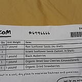 We received a contaminated products which we became ill from. Contacted nut.com and they acted like idiots. Treated the whole affair like some grade school child -completely cavalier for a serious event that has two state Health Department investing the product. It was a chocolate mix from a company in PA contaminated with bacteria from which we go sick. Nut.com stated, CS, that they would get their food safety people involved -they have NO food safety people. Part of their problem is that they use bins and fill packages from the bins which result in really cramped, damaged, broken, squashed product - The product was tested and found to be contaminated. Since nut.com behaved like happy idiots we just will no longer order from them and await the state agency results. Go somewhere else to buy and be safe- your health is too important to be treated so lightly by Nut.com