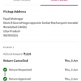 I ordered two products from Nykaa on 28th May out of which one was delivered to me on 2nd of June and the other one on 1st of June. The product that i received on the 2nd was wrongly delivered for which i Immediately requested return and it was pickedup and the refund was initiated. The other product which i received on 1st had some size issues for which I requested the return on the 3rd of June for which the return window was still open. On the same day the delivery person came and took the product but i did not received any message until the evening that the product has been picked up... Later that evening suddenly i received the message from nykaa that the return has been cancelled without specifying any reason. I spoke with the customer care and they verified everything and said that they will speak with the courier team and update. Now i get the response after almost 15-20 days that the investigation was done and found that the product was not picked up. They have refused to provide me with any kind of explanation and nor they are refunding the money. I had chat with them for almost half an hour and all they could say was we investigated and we did not received any product. Nor they provided with any kind of proof of investigation. Worst experience till date with such a big brand