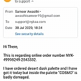 Nevertheless no response from Nykaa customer care also. System generated response for mail sent.