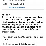 Today is 7th August, 2020 and it's been more than 7 days I didn't get any solution or replacement from them.