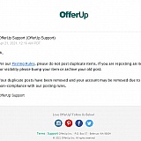 I never post anything duplicate, all of sudden they banned me from posting duplicate? What crummy service they have, I used to use Letgo & it was awesome they these offerup more like offer Down bought them & ever since they gone down hills in the cracker. I don't sell there any more since they are so rude & racist.