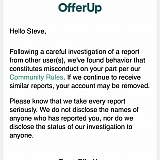 Got scammed on OfferUp and had to contact customer service. All I got was worthless canned emails in response. If you're going to use this site be sure to use a credit card with strong fraud protection because you'll likely need to use it.