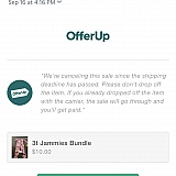 They basically stole from me. I sold something, shipped it on time, and they cancelled the order EVEN THOUGH THE ITEM WAS SHIPPED. So the customer received my item and a refund. Must be nice. Tried contacting customer service twice with no replies. Definitely don't sell on OfferUp or don't ship.