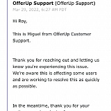 OfferUp is run by a small group of 500 incompetent staff & a CEO who has no idea how to run an online sales platform. Thousands of complaints about the Company an F Rating from the Better Business Bureau. It's pathetic this company Scammers are still operating.