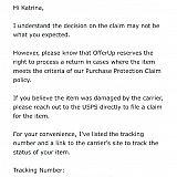 OfferUp failed to protect my merchandise with their postage label. It was damaged during the shipping.