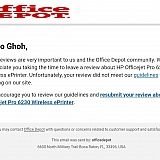 My review submitted to Office Depot that was rejected. [Not present in original in brackets]