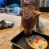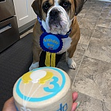 We purchased the peanut butter and pumpkin balloon cake for his 3rd birthday and he absolutely loved it. He devoured it. The packaging was super cute! The only issue I had was that the large birthday ribbon I got, there was no way to put it on him. So I had to grab one of his bandanas to put it on him. Other than that, it was amazing and I'll be purchasing here from now on!