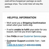 Old Navy, shipped my Christmas gifts though, Laser ship. They delivered my presents to the wrong address. They left my presents at a house, where drug addicts live. And they won't help me, I called them. I can't believe this, we spend so much money, now we will not have presents under the tree.