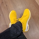 I received my order in 3 weeks. I received a text stated they had shipped but received 2 weeks later. They are comfortable & I love the bright yellow color. I would advise sizing up. They run small!