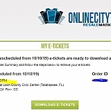 I found the tickets. I clicked on the two I wanted. Online City Tickets ask for Payment method. You do not see the final order until they have credit card information. Then you see a lot of fees and policy is applied to your cost. Two tickets were $117.00 ended up costing $577.00. With no refund. I called and live chat 10 min after the order. No live person on phone calls and scripted answers from the live chat online. Take away: I will never buy tickets from this organization ever. Good with any purchase with this terrible company.