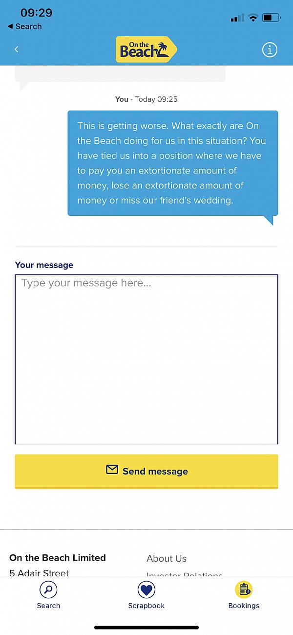 I am now left in a position of finding On The Beach untrustworthy, and anxious over if my holiday will have problems that will leave me unsecure or out of pocket at last minute whilst abroad.