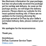 I contacted OnTrac customer service, who repeatedly requests the same information I already provided and then copy-pastes, "If that's all the assistance you need today." then disconnects me abruptly.