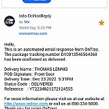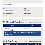 Ontrac has never delivered product to my door despite stating "DELIVERED" "Front Door" or "DELIVERED" "Front Soor". I have found, any company who used Ontrac to deliver the product purchased gets delivered to the house to the right of my house or to the left of my house, across the street or down the street. I then go walking down the street to find my box or boxes. There Tracking website doesn't work either. I would rate Ontrac a minus number if I could.