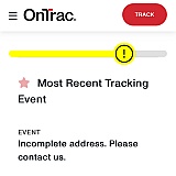 The first package to receive through Ontrac was also delayed due to lack of delivery address when everything was correct on the seller's website. I spent days trying to communicate with an advisor via text message, who did not answer me, until luckily I arrived with a good, friendly advisor who took the time to help me and thanks to him my package arrived.