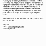 Bought the plane tickets ans 24 hours later, a guy named Shawn called me and told me I have to pay 180$ to reserve seats or else they could not guarantee I'd have one. I asked him if I could do it at the airport for free and he said I'd pay more.