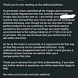 Remember this is a prepay business. So they have your money before you have a chance to see what you are getting. If you had a chance to view and handle the finished product and approve it, before paying, maybe they wouldn't let these things happen. But they do. What a waste.