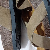 So upset. Waited so long for sandles ordered which were suppose to be Brown Mooseleather I choose from the pictures a lovely leathery brown colour with black writing on the foot of the sandles. Am super sure the middle of these sandles are suppose to be cork like birkenstock. So what I recieved today was a pair of yellowy tan cheap leather with yellow writing on the foot of sandles the middle is made of PLASTIC the sides of the sandle have glue protruding from them. NOT authentic Mooseleather. Seems Ozsale are using genuine pictures but getting these sandles made from some cheap knock off oversees factory. Oh, and their a weird fit, they kind of stick out at the heel. SO dissapointed now how to wait for my refund and go buy a PROPER pair of shoes.