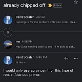 Purchased white touch up paint for my Hyundai Sonata, followed the instructions, and the paint mostly if not all had chipped off within 6 months. After going back and forth with "Dave" for 2 weeks answering his questions about how I applied the paint, he graciously offered me a $2.50 discount off some new paint! What a joke. I will never give this place business again