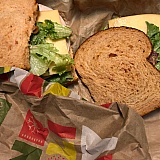 A while ago I took home a salad to go and it had no dressing. Haven't been back until tonight, about a month later, for an order to go. My sandwich was so loosely wrapped it fell apart in the bag. My Fuji apple salad had not one apple. Note, that now when you pay at register they now ask for a tip. Subway does a better job and it's cheaper. Heck, McDonalds does a better job. Probably won't be back unless eating in location which I don't much anymore because... well because of Covid fears. (photo was after I put sandwich back together.)