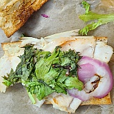 I had a very unfortunate visit at Panera in Newburgh today. I waited for half a baguette sandwich for 30 minutes only to be met with the saddest sandwich I have ever seen for 11 dollars. The sandwich is thin with meat, there was one red onion on there and the lettuce was OLD, WILTED and spoiled. This truly was the worst sandwich I have ever seen. I know that Panera likes to say all of their ingredients are quality and fresh, but the picture here speaks for itself. I will never be going here again and I suggest you don't either. I used to be a huge fan of panera but my experience today was frightening with the quality and wait time.