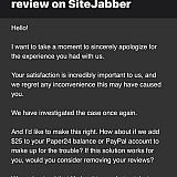 And I'd like to make this right. How about if we add $25 to your Paper24 balance or PayPal account to make up for the trouble? If this solution works for you, would you consider removing your reviews?