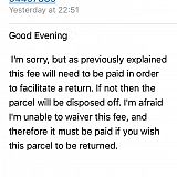 But no no no... they still say I should pay £54.50 for the return, or my parcel will be disposed off.