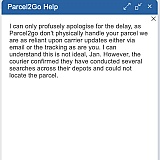 I have sent the parcel in November and until today I cannot properly reach parcel2go. No phone number only messager or email for complain(with no reply in 3 months) through messanger only hearing keep on waiting. I have paid the company and also insurance and have no idea where the parcel is. Very angry at this kind service. Definitely don't recommend to use them.